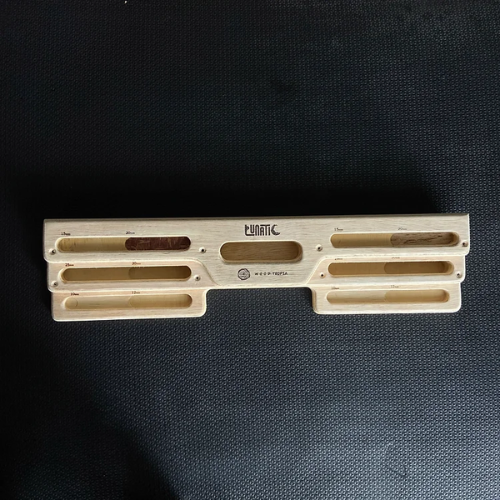 “Desenvolvido em parceria com a Woodtropia, esse fingerboard nasceu da ideia de Gabriel Bello em produzir um fingerboard multifuncional e que atenda a necessidade de todos os tipos de escaladores. Depois de algumas conversas com Gabriel Torpia, reuniões e muitos rabiscos no papel, nasceu o Fingerboard Lunatic”